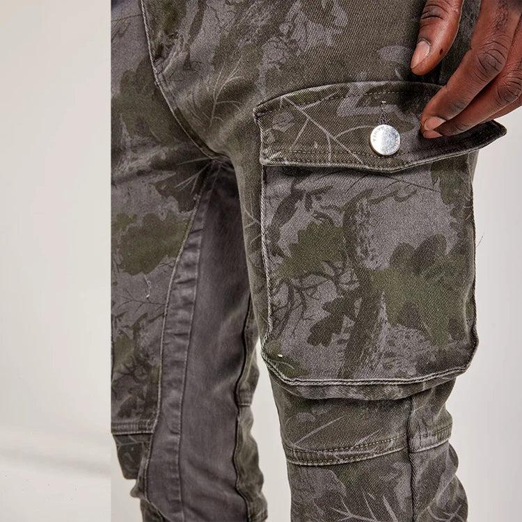 Design: Camouflage pattern combined with multi-pocket design, enhancing practicality and fashion sense.