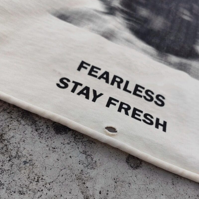 Design: The front features a unique graphic and the words "Fearless Stay Fresh,", showcasing personality and fashion sense.