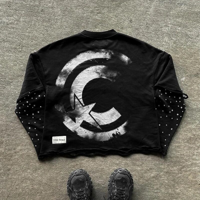 Design: The "CLRVNT" text on the front contrasts sharply with the large C pattern on the back, while the dotted decorations on the sleeves add visual depth.