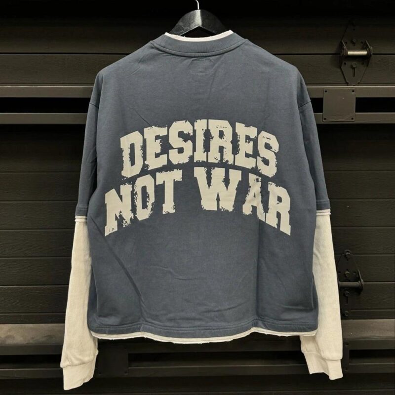 Design: Unique color-block design combined with an anti-war slogan print, showcasing personality and attitude.