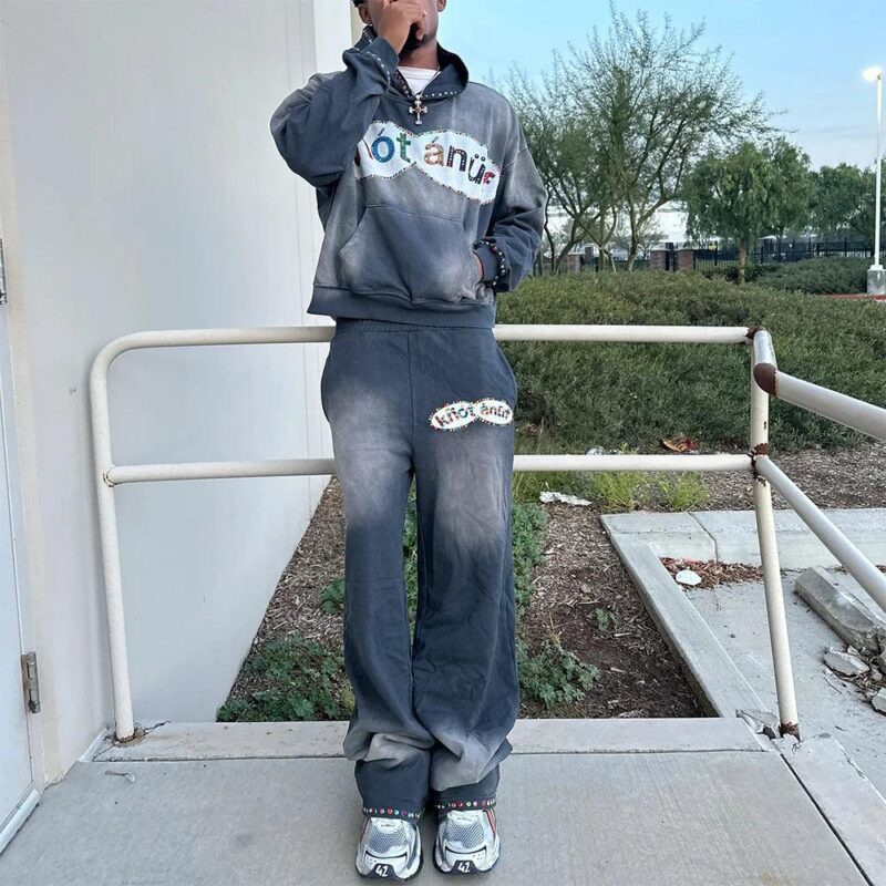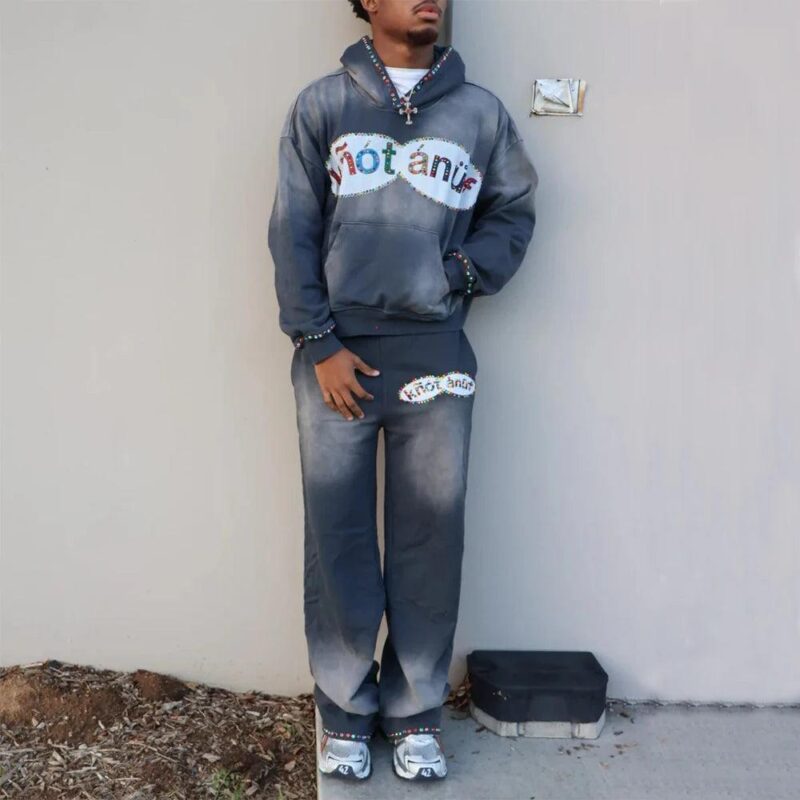 Design: Gradient color design with distinctive text patterns on the chest and pants, showcasing personality.