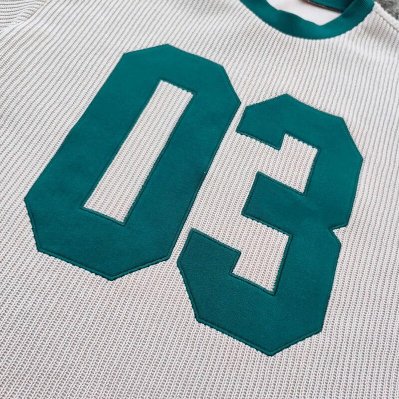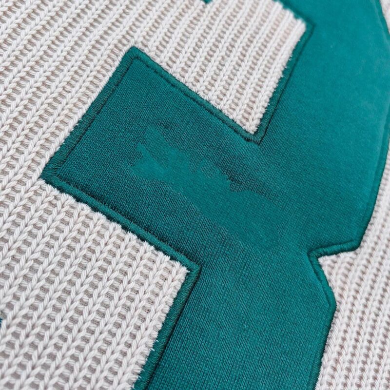 Craftsmanship: High-quality applique embroidery is used, with the green number 12 pattern being three-dimensional and textured.