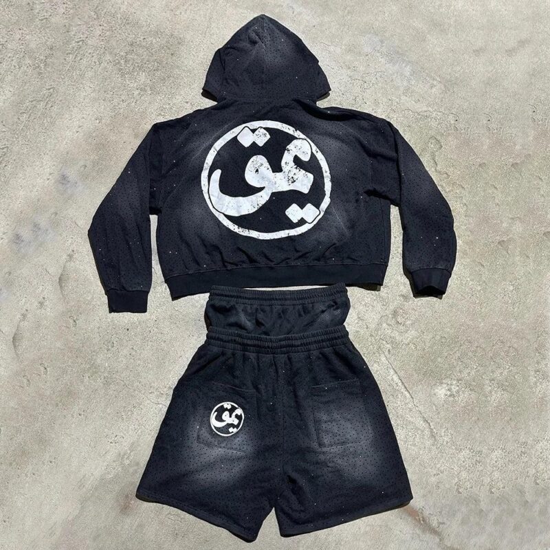 Design: The hoodie has "LIFE OF A STAR" and star patterns printed on the back, while the shorts are embroidered with "SC.21", offering a stylish and personalized look.