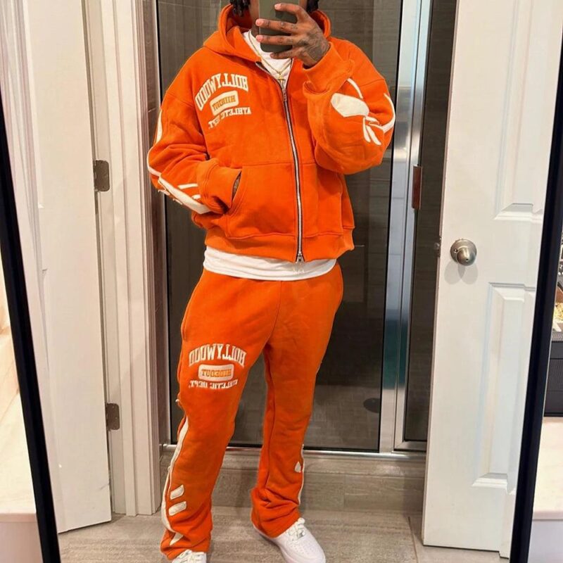 Design: The "HOLLYWOOD" lettering on the chest and pants showcases a fashionable personality.