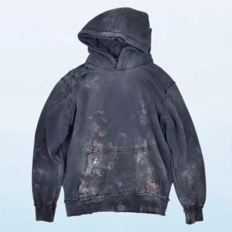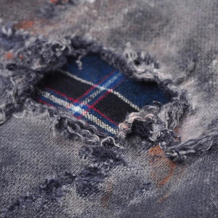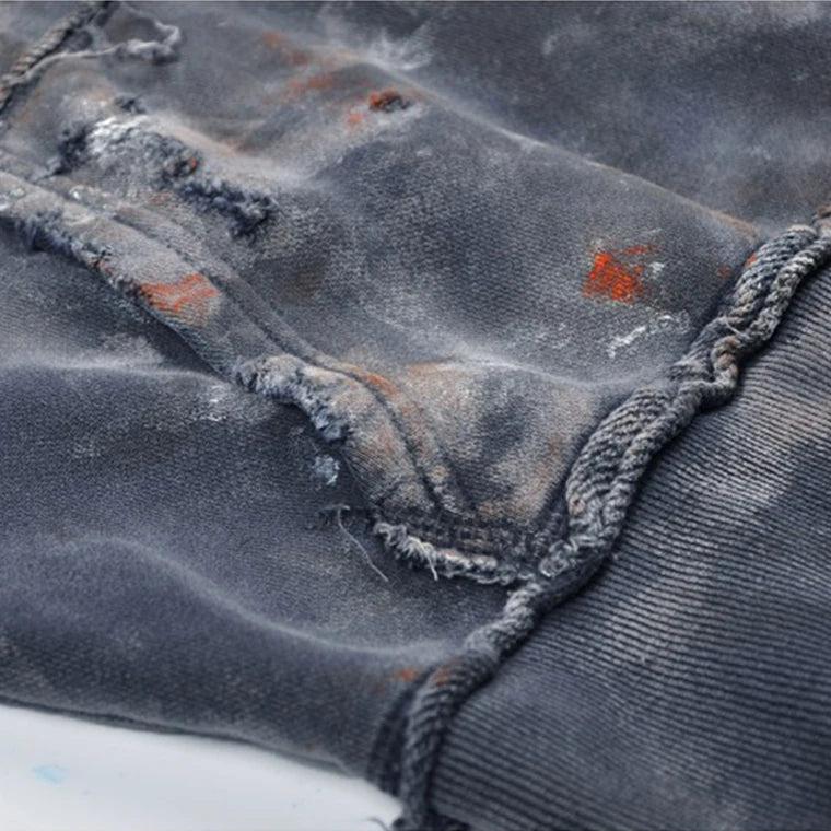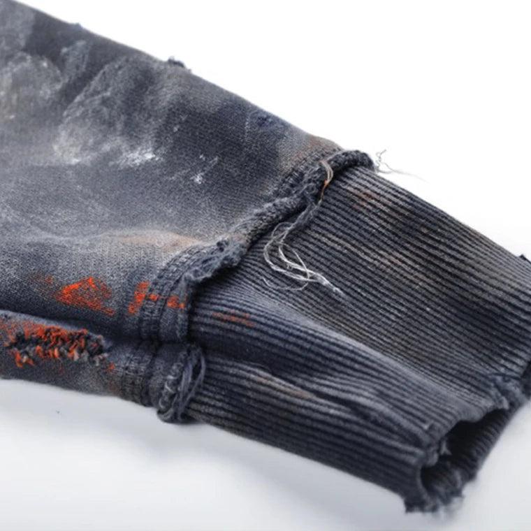 Design: Unique distressed wash effect with frayed designs on sleeves and hem, adding a fashionable touch.