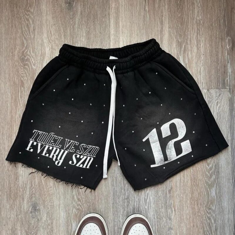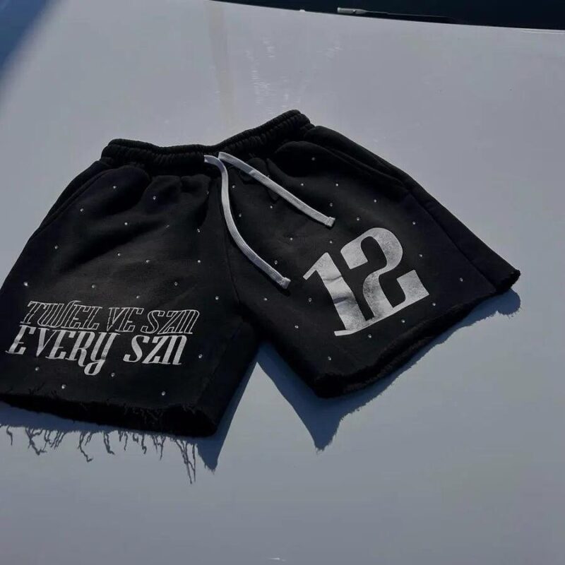 Design: The shorts are printed with the number "12" and an English phrase, adding a fashionable and personalized touch to the shorts.