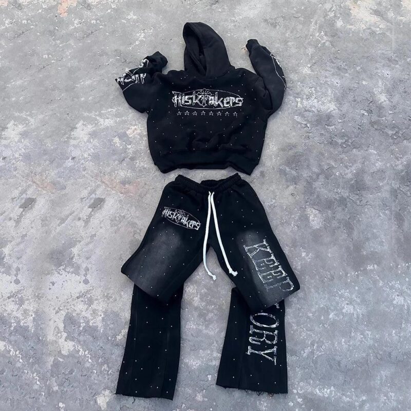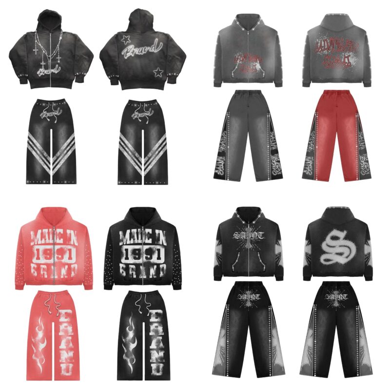 Design: Set includes a hoodie and sports pants, with a unified style suitable for consumers who pursue fashion and individuality.