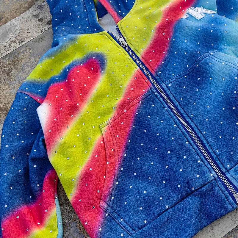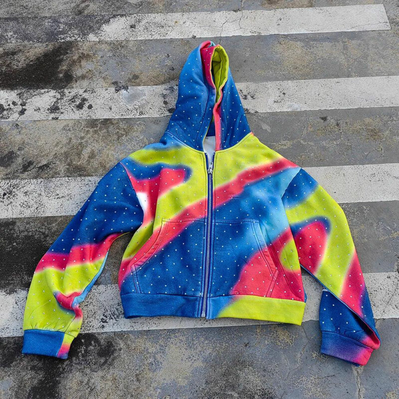 Craftsmanship: Made with tie-dye craftsmanship combined with rhinestone application, giving the clothing rich colors and a unique visual effect.
