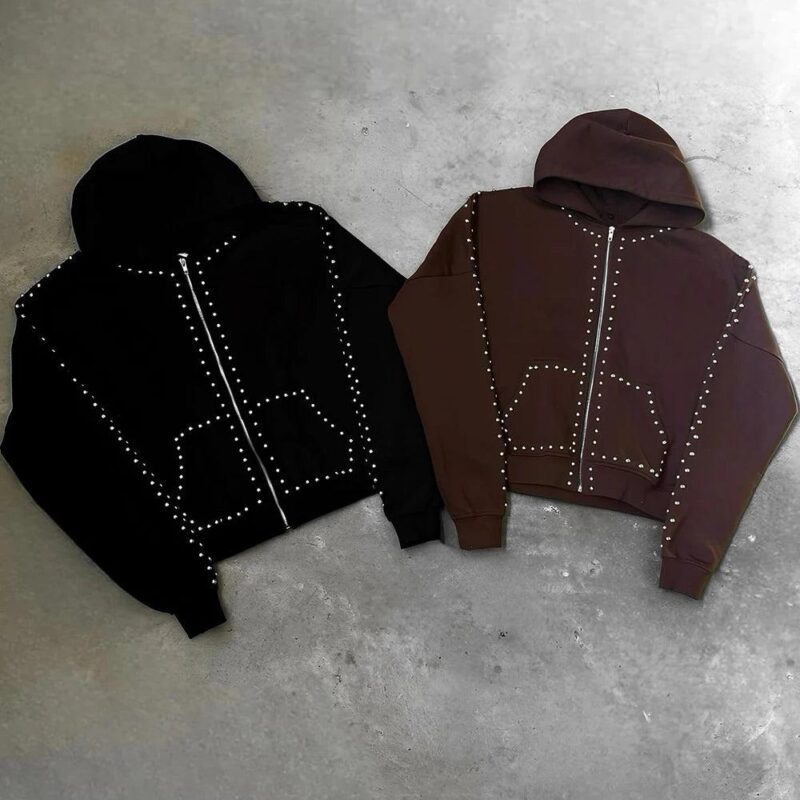 Design: Front zipper design for easy wear and removal, adding a fashionable touch. The rhinestone decoration on the sleeves and body adds a unique visual effect.