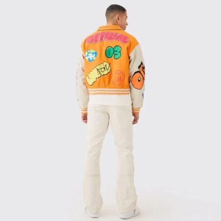 High Quality Embroidered Baseball Bomber Jacket with Full Zipper, Boxy Cropped Varsity Letterman Jacket for Men by Xinyuan