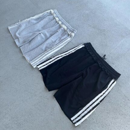 Xinyuan OEM Heavyweight Cotton French Terry Shorts, Custom Striped Side Men’s Distressed Raw Hem Wide Leg Streetwear Sweat Shorts