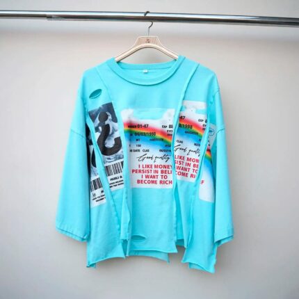 Xinyuan Custom 100% Cotton Heavyweight Oversized T-shirt, Embroidery Logo Men’s Color Block Raw Hem Boxy Long Sleeve T-shirt