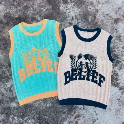 Xinyuan Basic Crew Neck Loose Fit Unisex T-shirts, Custom Embroidery Logo Men’s Crochet Knit Sleeveless Sweater T-shirt