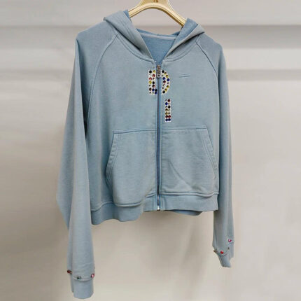 Xinyuan 400 GSM Heavyweight Cotton French Terry Hoodies Custom Logo Print Sunfaded Vintage Wash Men Zip Up Boxy Rhinestone Hoodie