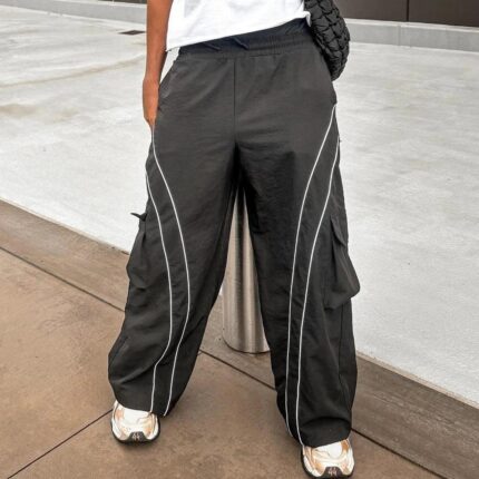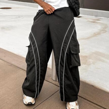 Xinyuan Basic Elastic Waist Nylon Streetwear Pants for Men, Custom Cargo Pockets Oversized Baggy Wide Leg Track Pants