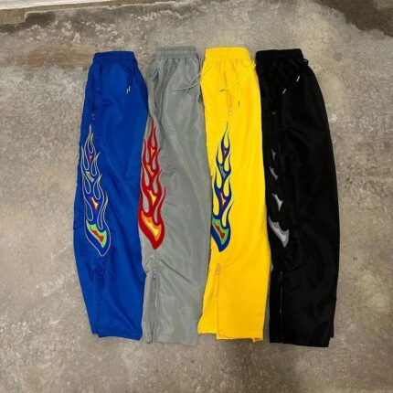 Xinyuan Basic Nylon Track Pants for Men, Custom Logo Graphic Print Zip Bottom Wide Leg Track Pants