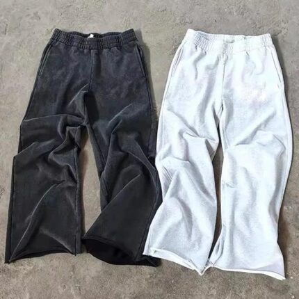 Xinyuan Basic Solid Color Wide Leg Sweat Pants, Heavyweight Cotton French Terry Men’s Oversized Baggy Sweatpants