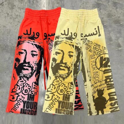 Xinyuan Custom Screen Printing Graphic Heavyweight Cotton Pants for Men, Vintage Washed Wide Leg Baggy Sweatpants