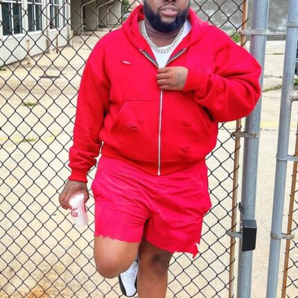 Xinyuan Custom Streetwear Tracksuits Sweatsuit Sets, Two Piece Men’s Zip Up Hoodie with Distressed Shorts Sets